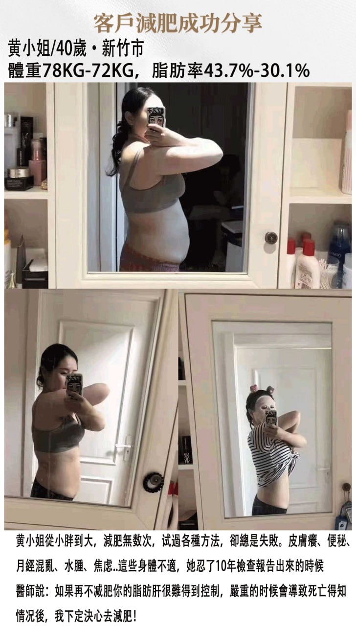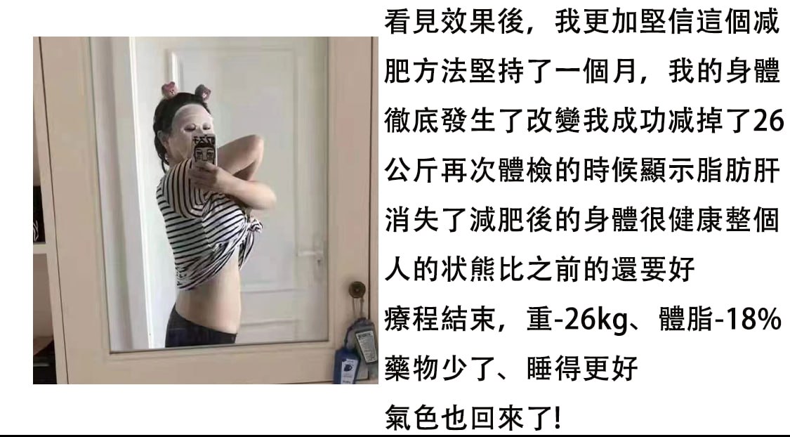 我是中年肥胖,無論怎麼減肥都沒有效果,還越來越胖!後面在網絡上看見胡醫師的這個減肥方法,就抱著嘗試的態度跟胡醫師減肥, 沒想到我用了一個月的時間,減下了7公斤!現在肚子上面的贅肉沒有了~